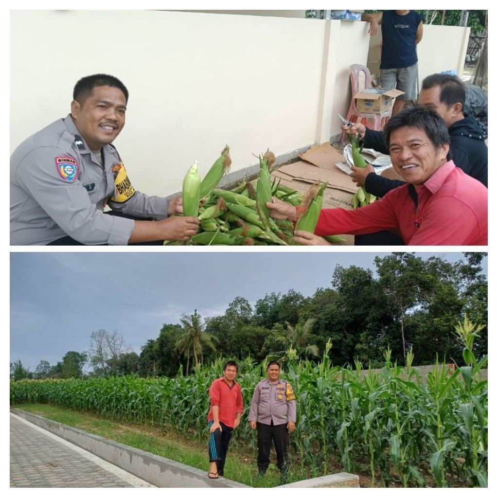 Bhabinkamtibmas Desa Merawang Aipda Julian Bersama Masyarakat Tanam Jagung di Lahan Koatin Merawang Kabupaten Bangka