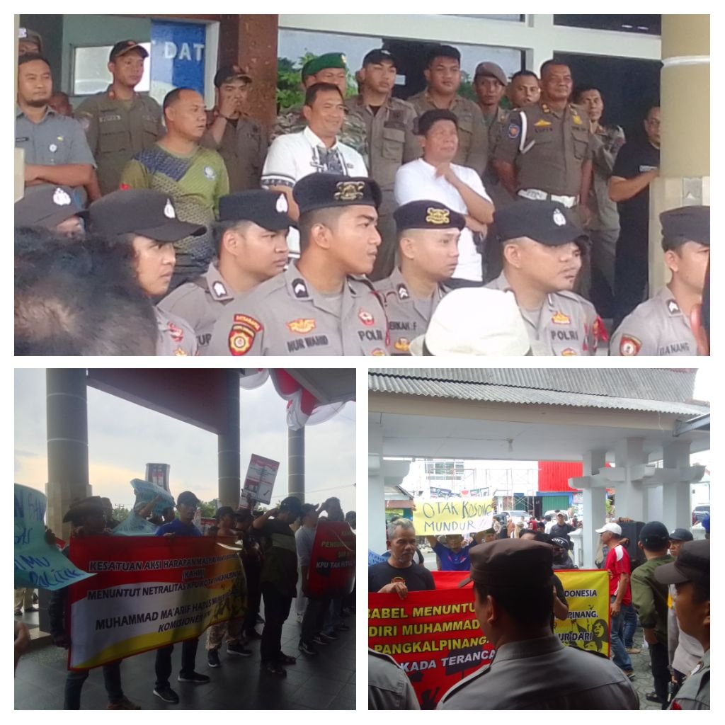 Masyarakat yang tergabung dalam Kesatuan Aksi Harapan Masyarakat Indonesia (KAHMI) menggelar aksi damai di depan Kantor Walikota Langsung menuju Ke Kantor KPU Pangkalpinang.