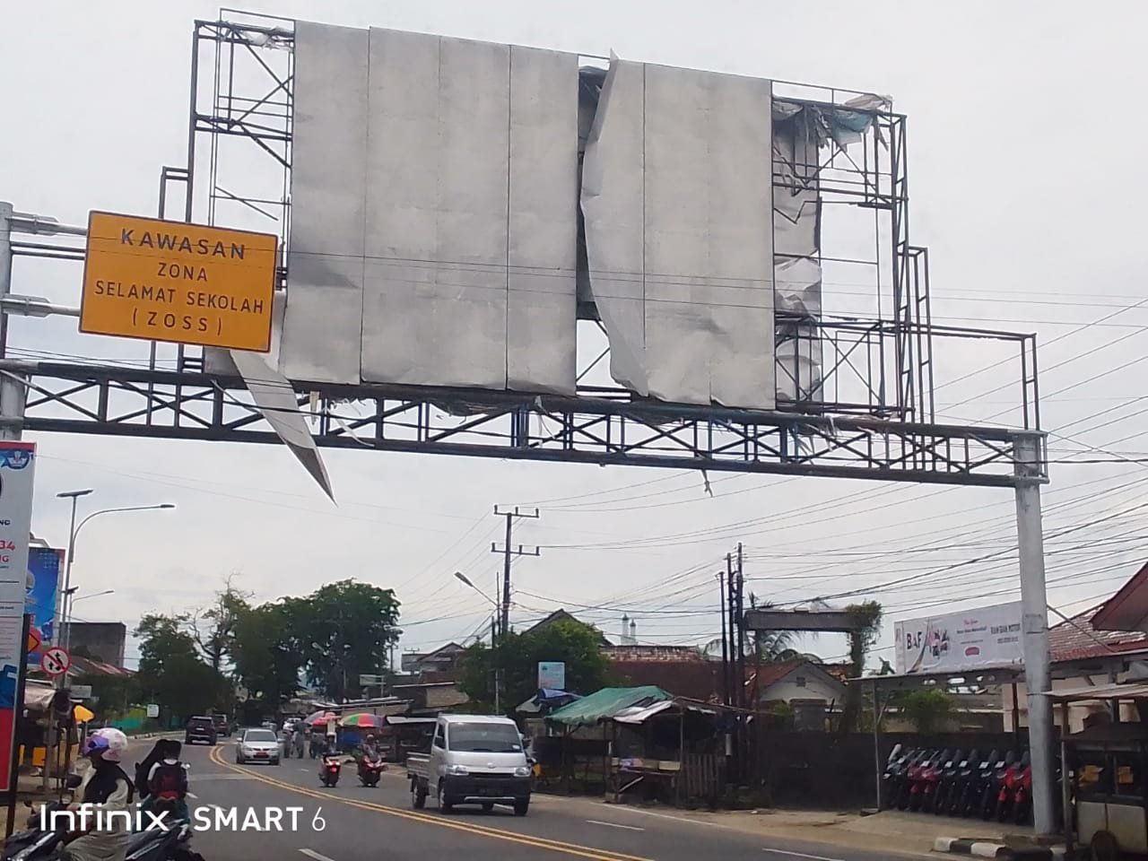 Salah satu warga amat sedang  jemput anak sekolah , berenti dan melihat ke arahan tiang reklame , waduh ini ,sangat berbahaya sekali bagi masyarakat saat melintas , takut puing puing bekas itu  jatuh dan menimpa para  pengendaraan yang sedang melintas ,apa lagi saat ini angin kencang ,nah ini siapa yang akan bertangung jawab  memakan korban akibat jatuh puing puing tersebut. ,ujarnya warga .