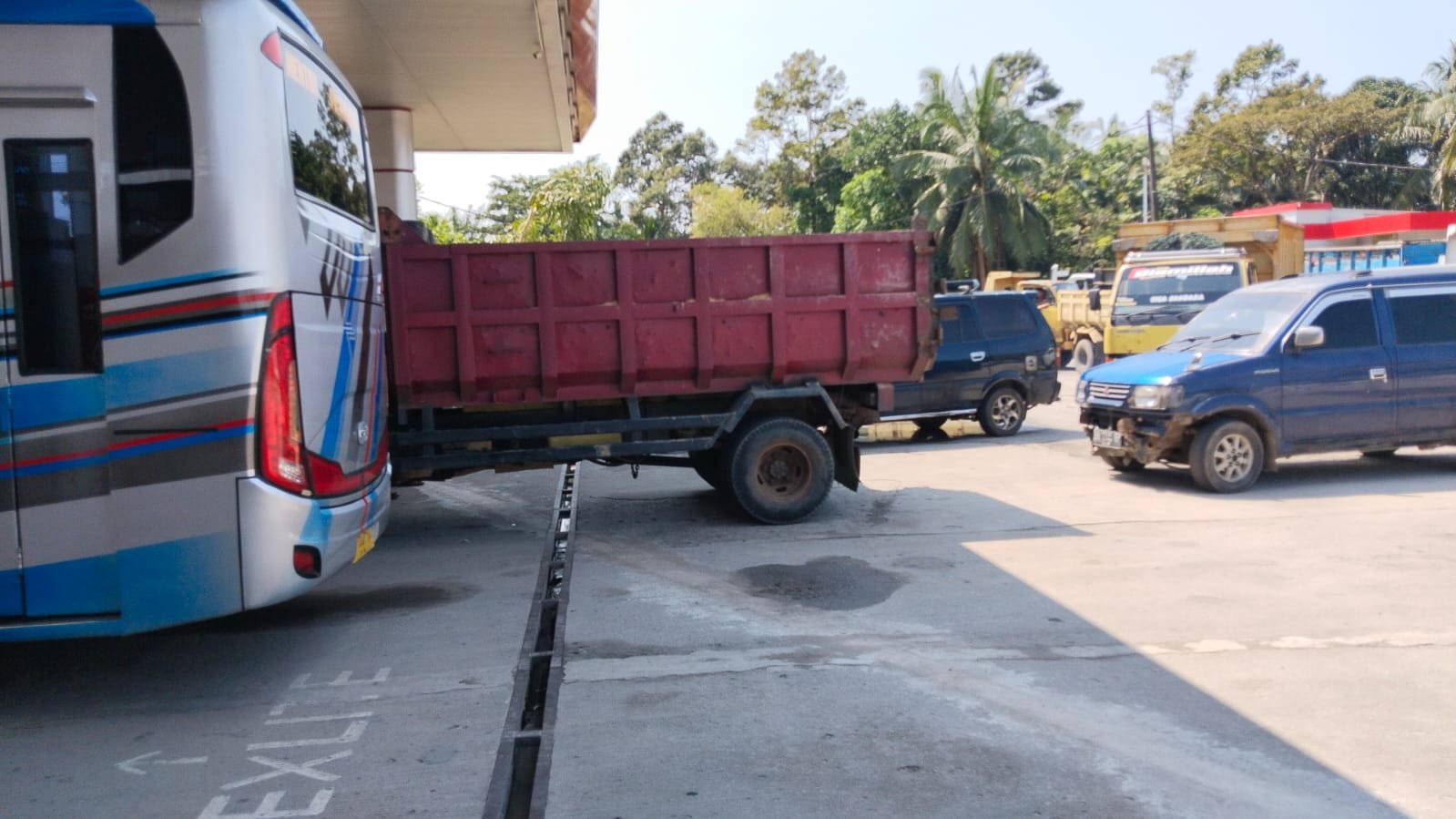 SPBU 24.333.128 PAL3 Muntok di Duga Menyebabkan Kemacetan Dengan Antrian Panjang